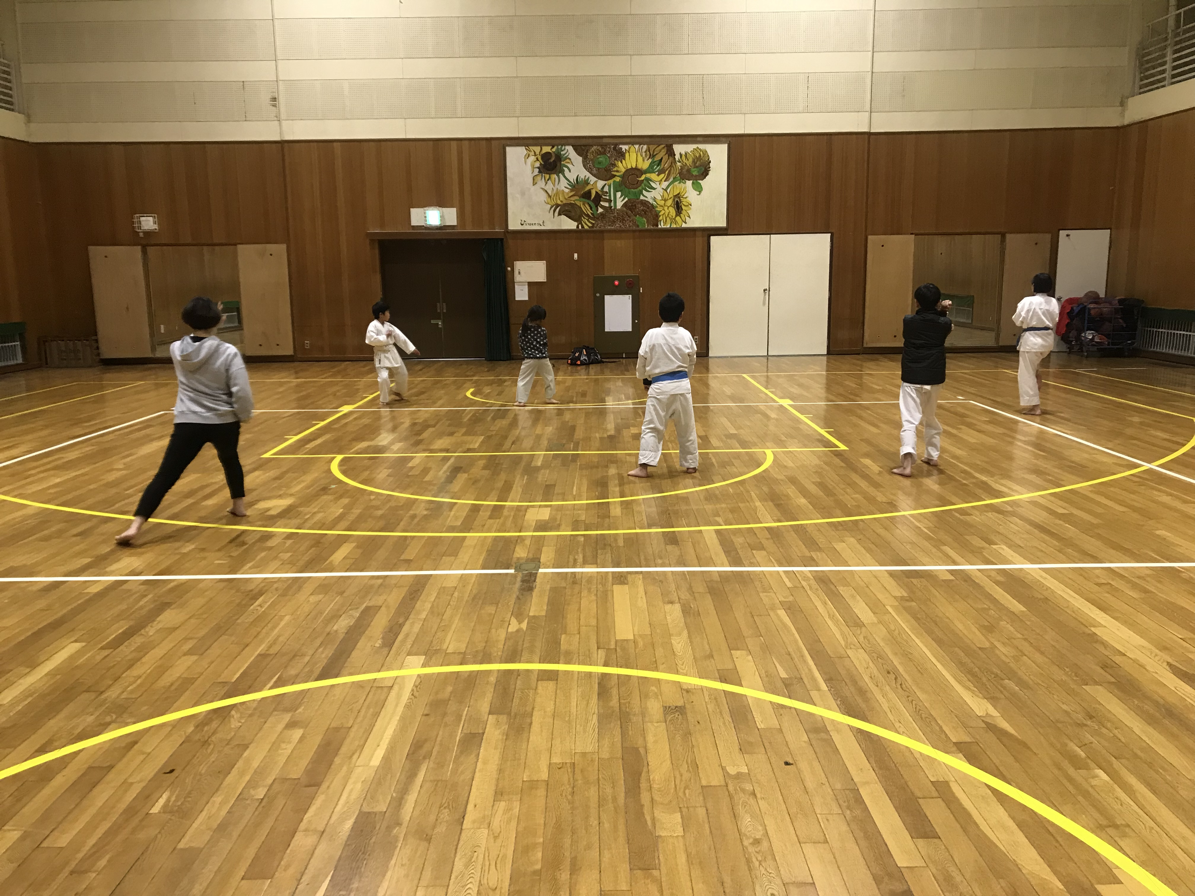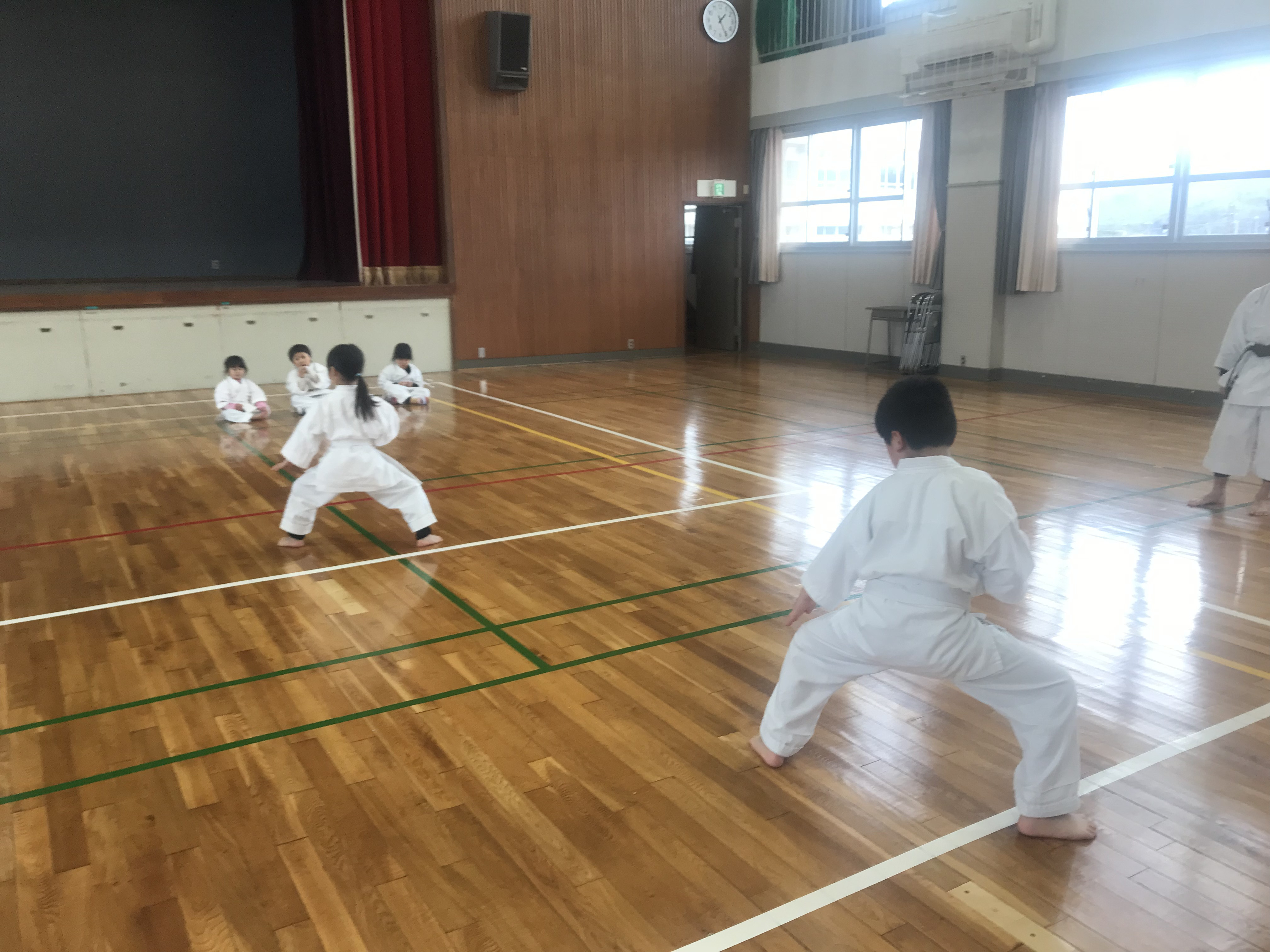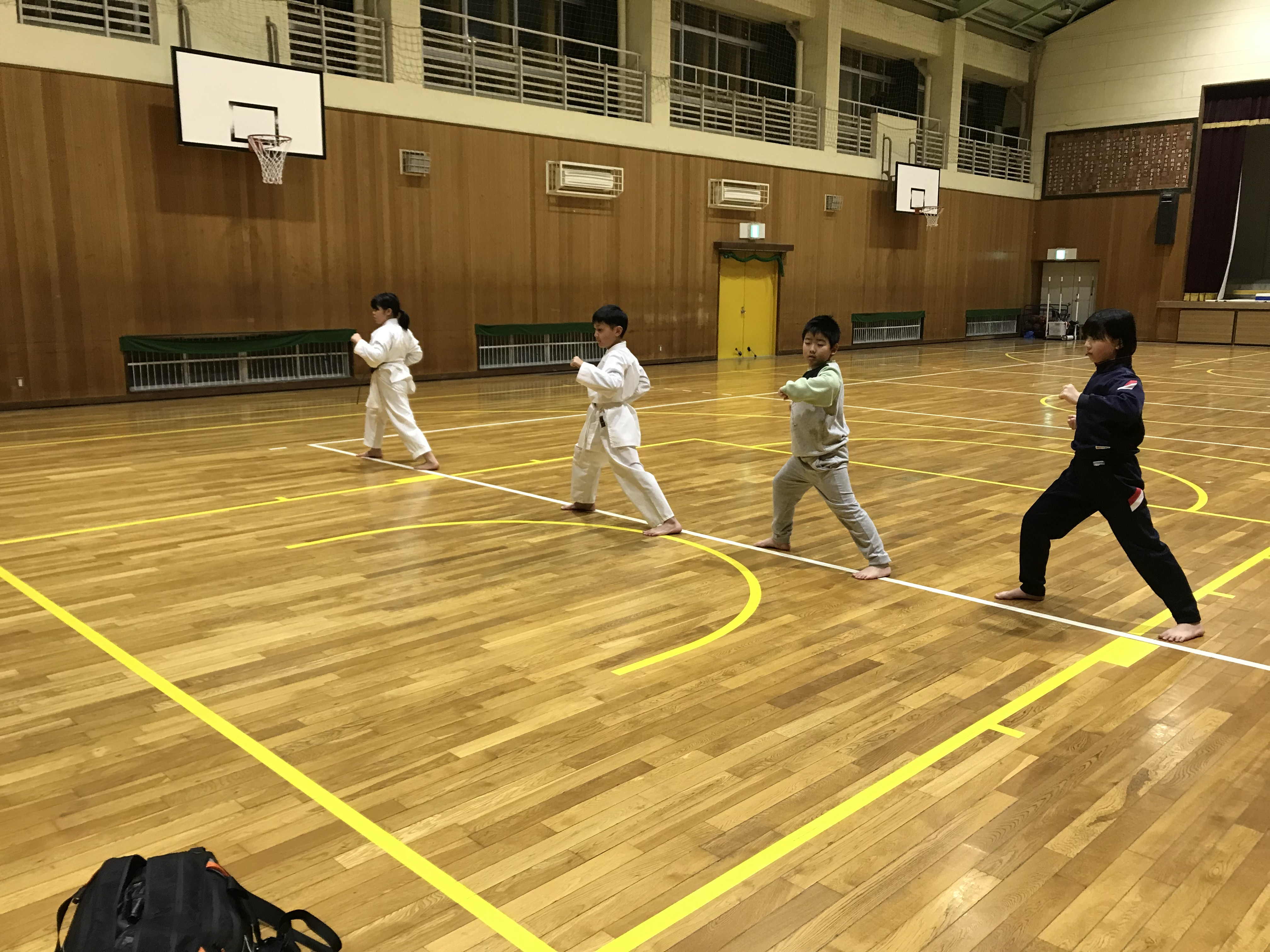 この日の内容ですが、立ち方から始まり引き手、突き、中段横受け・上段揚げ受け・下段払い・四股立ち突きでした。