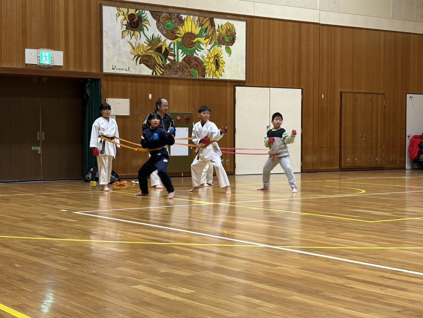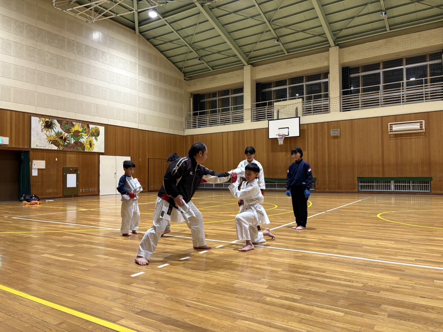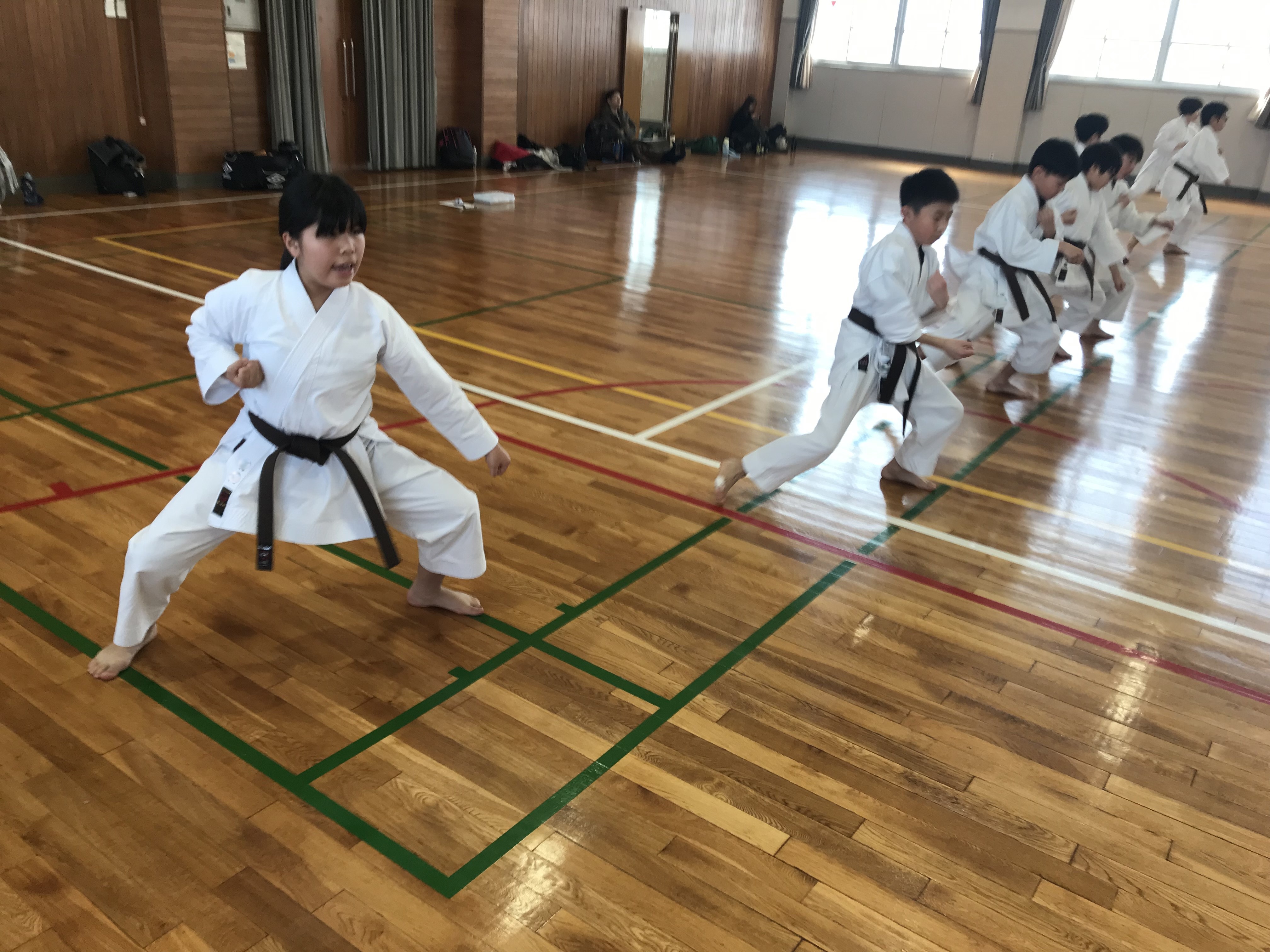 この日の内容ですが、立ち方から始まり引き手、突き、中段横受け・上段揚げ受け・下段払い・四股立ち突きでした。