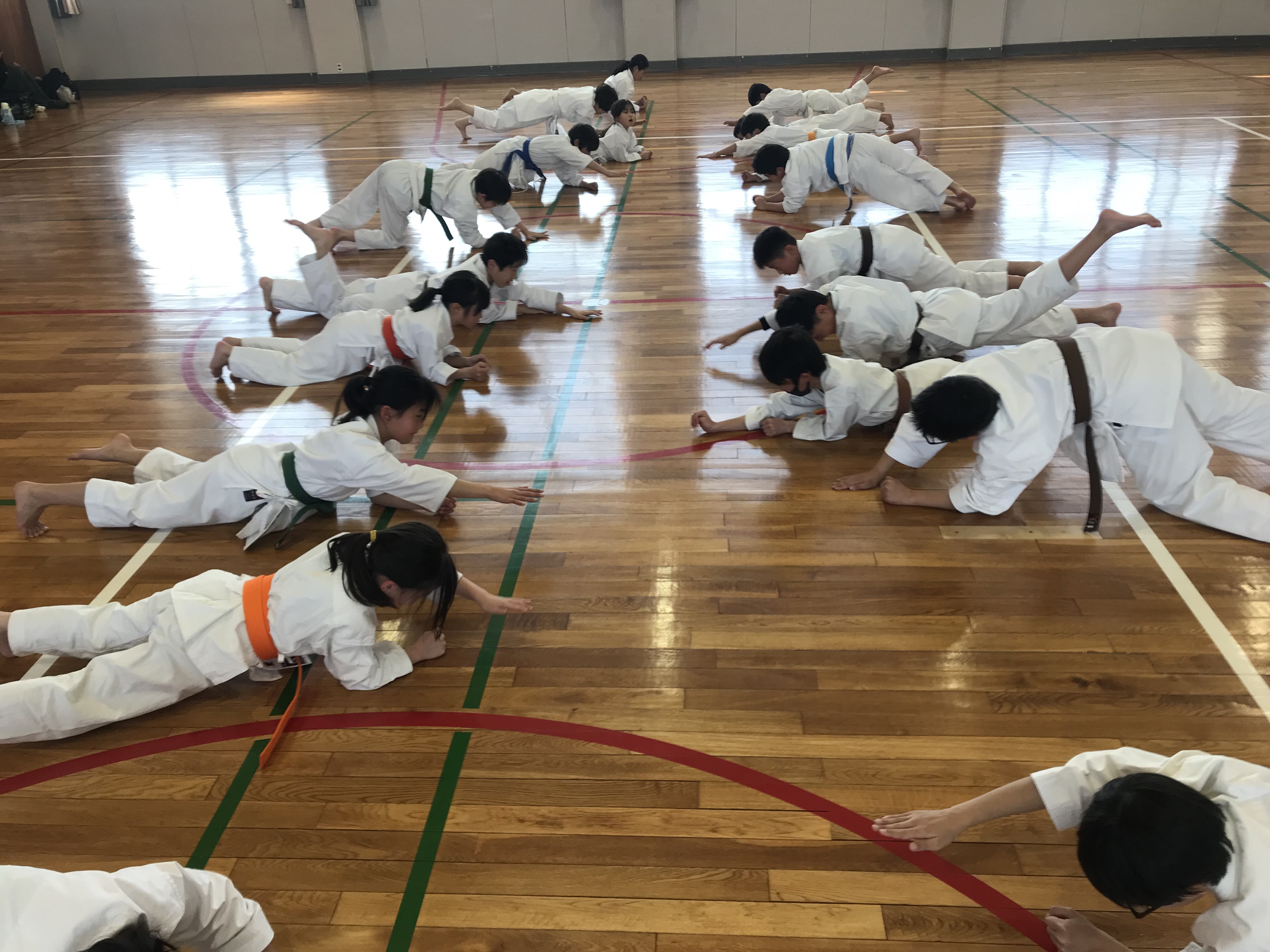 今月入会したばかりの生徒や体験生もいることから、抜群の体幹を誇るYちゃんにみんなにマネしてもらうよう真ん中でお手本を披露してもらいました。