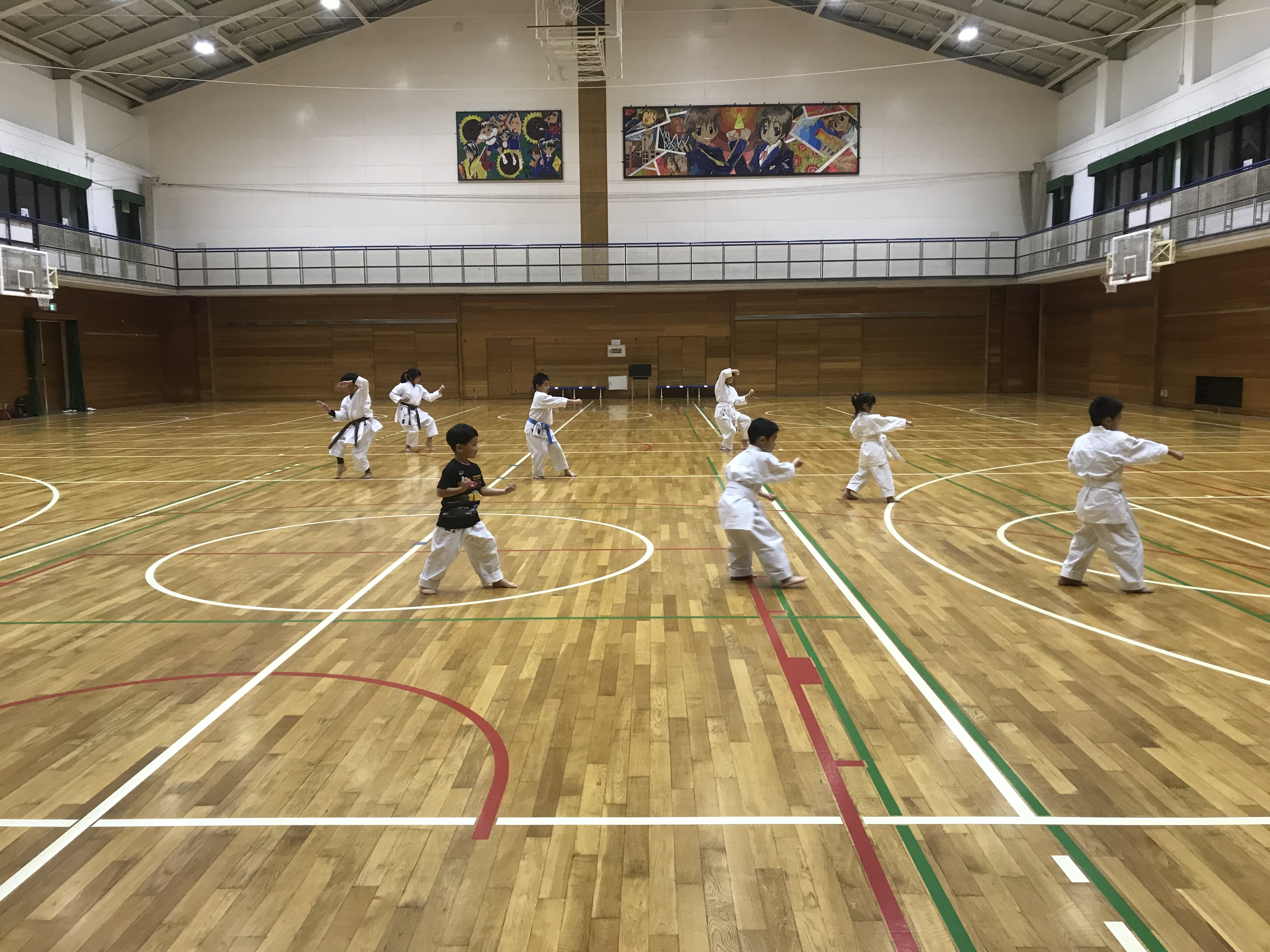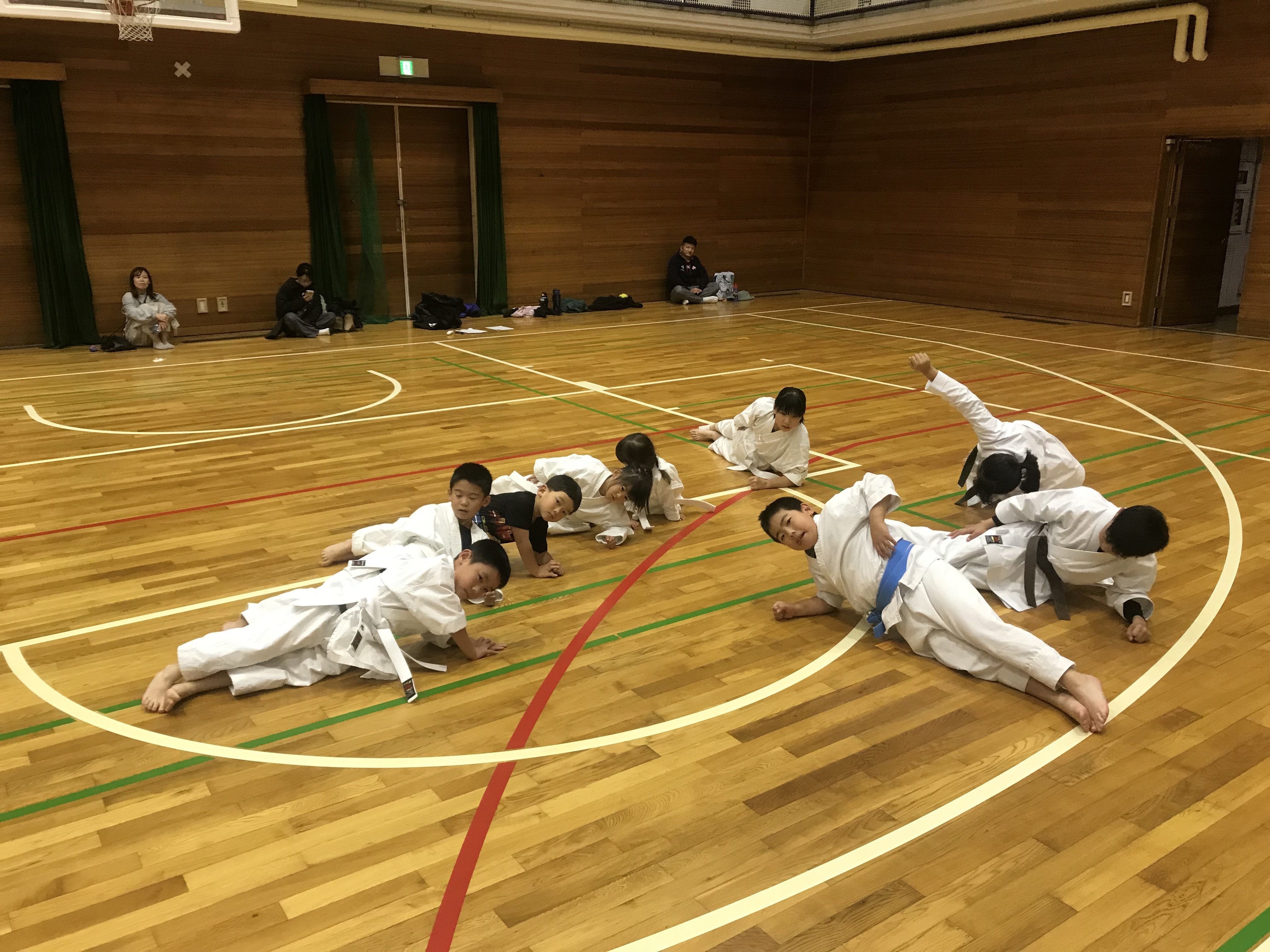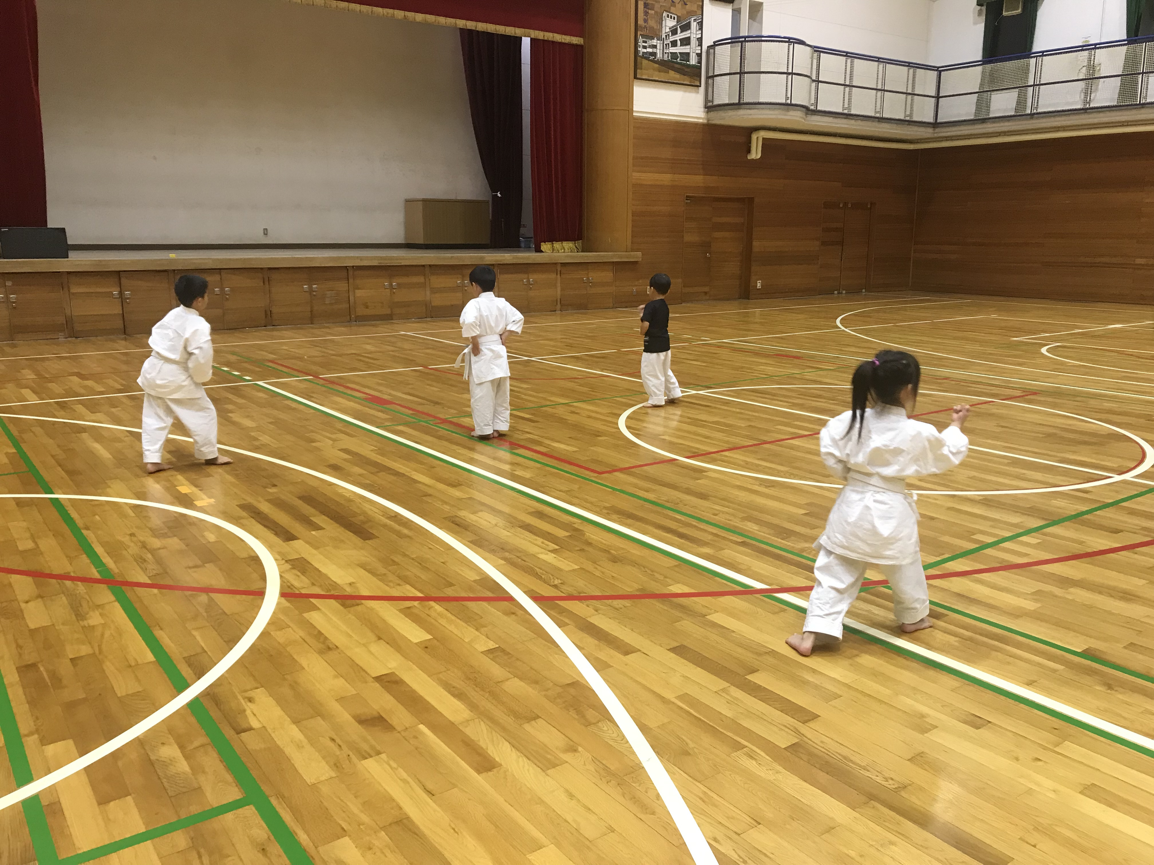 道場広いのに子供たちはどうしてかいつも密着して体幹してる。