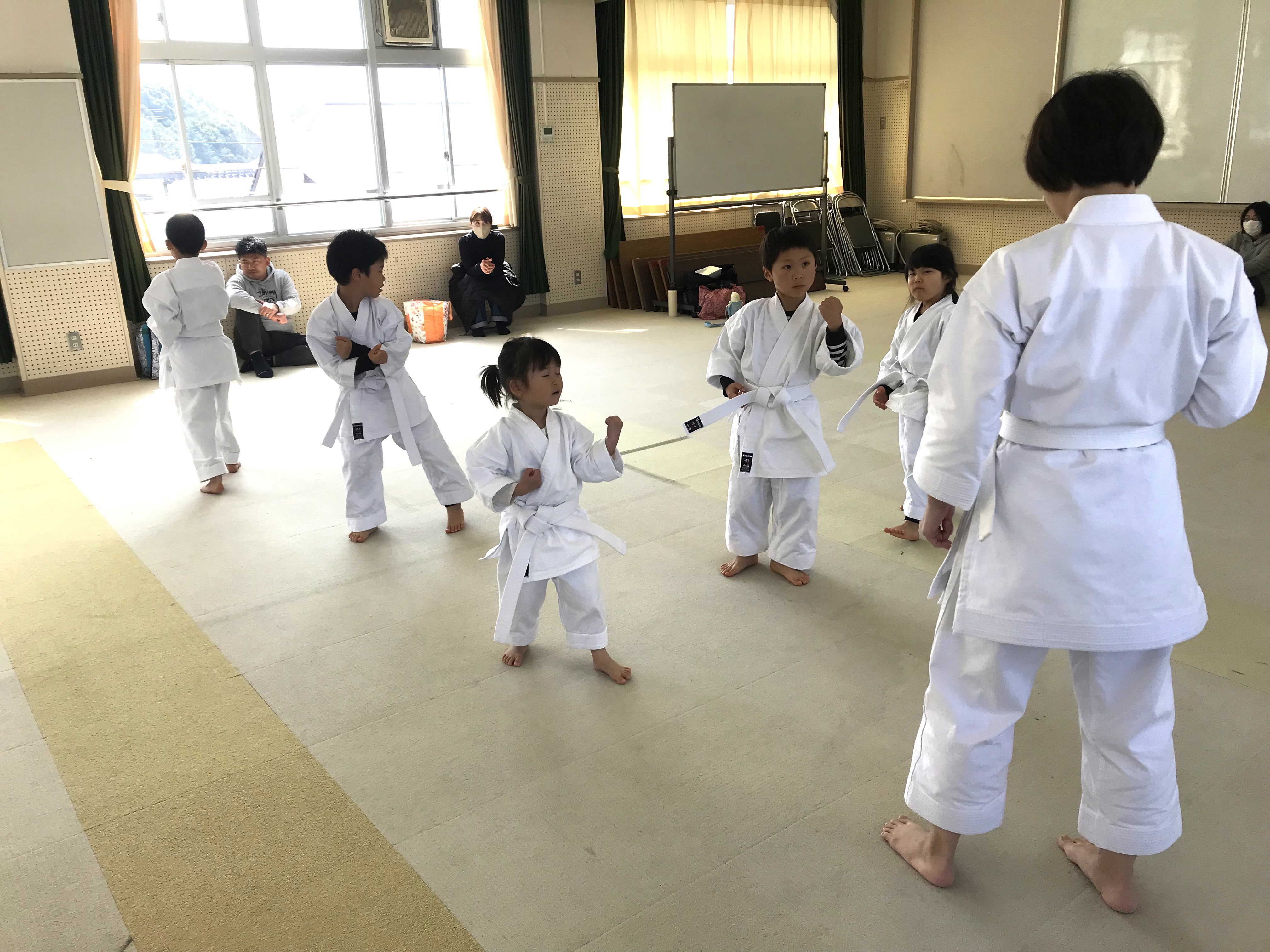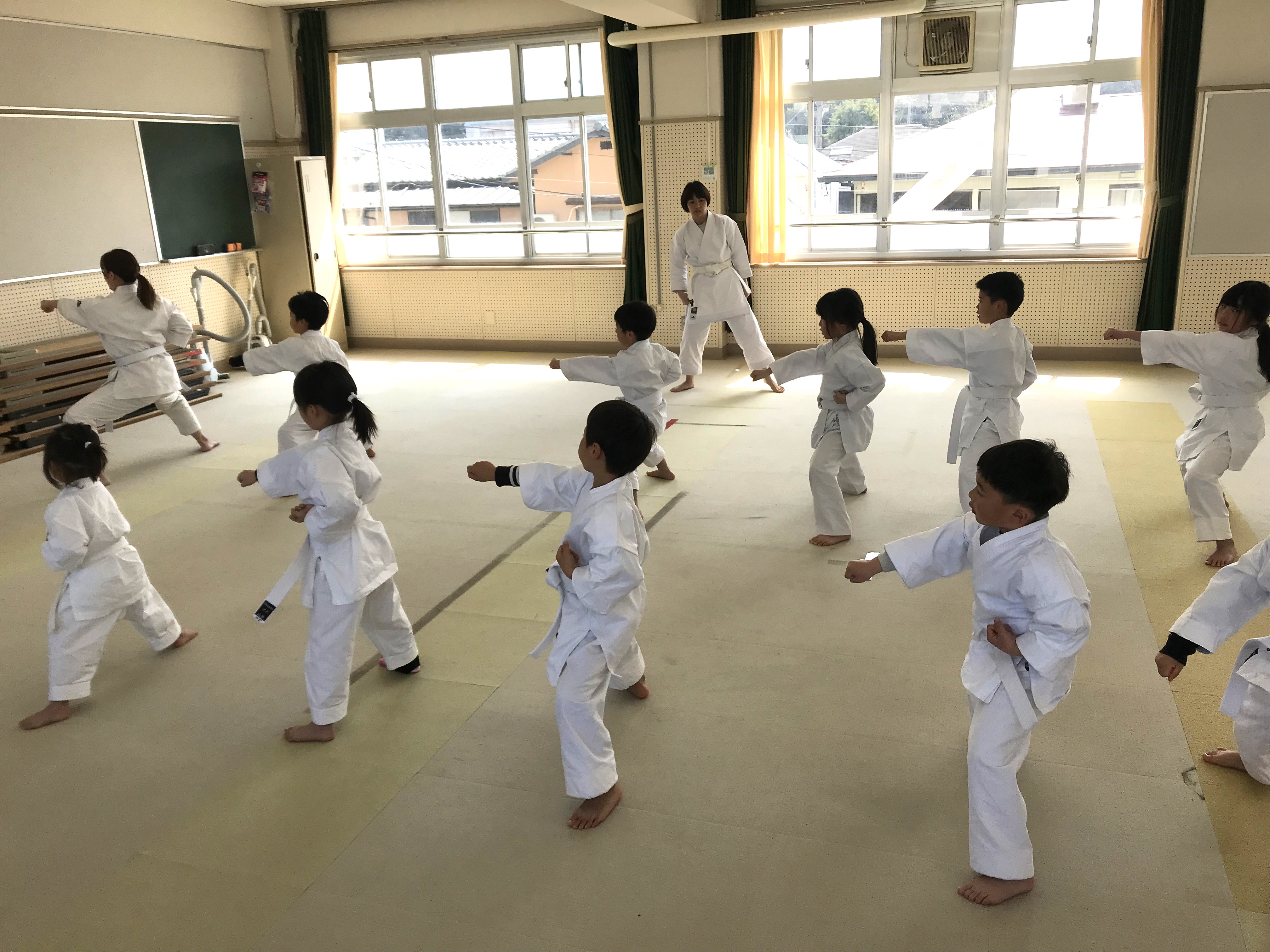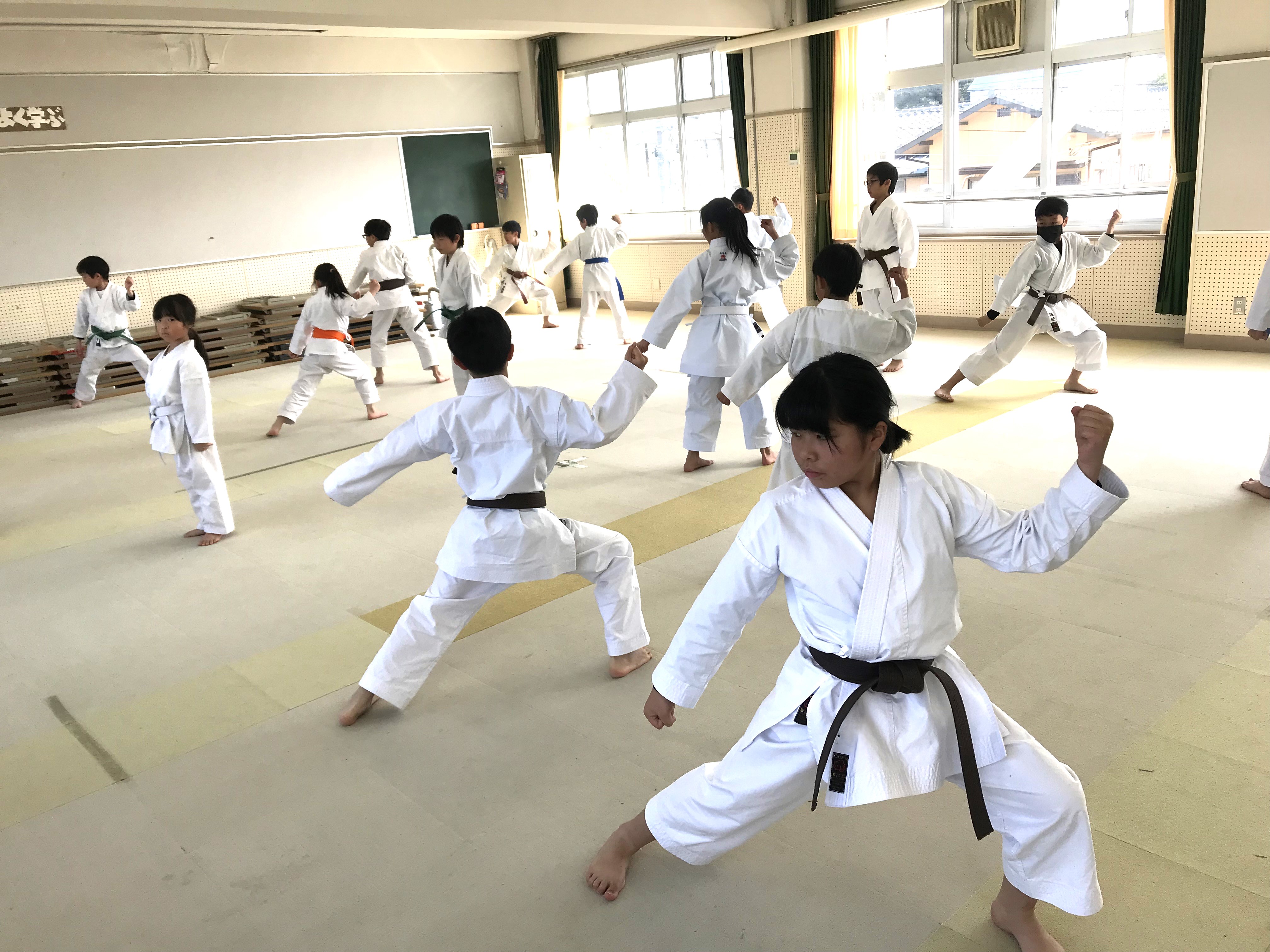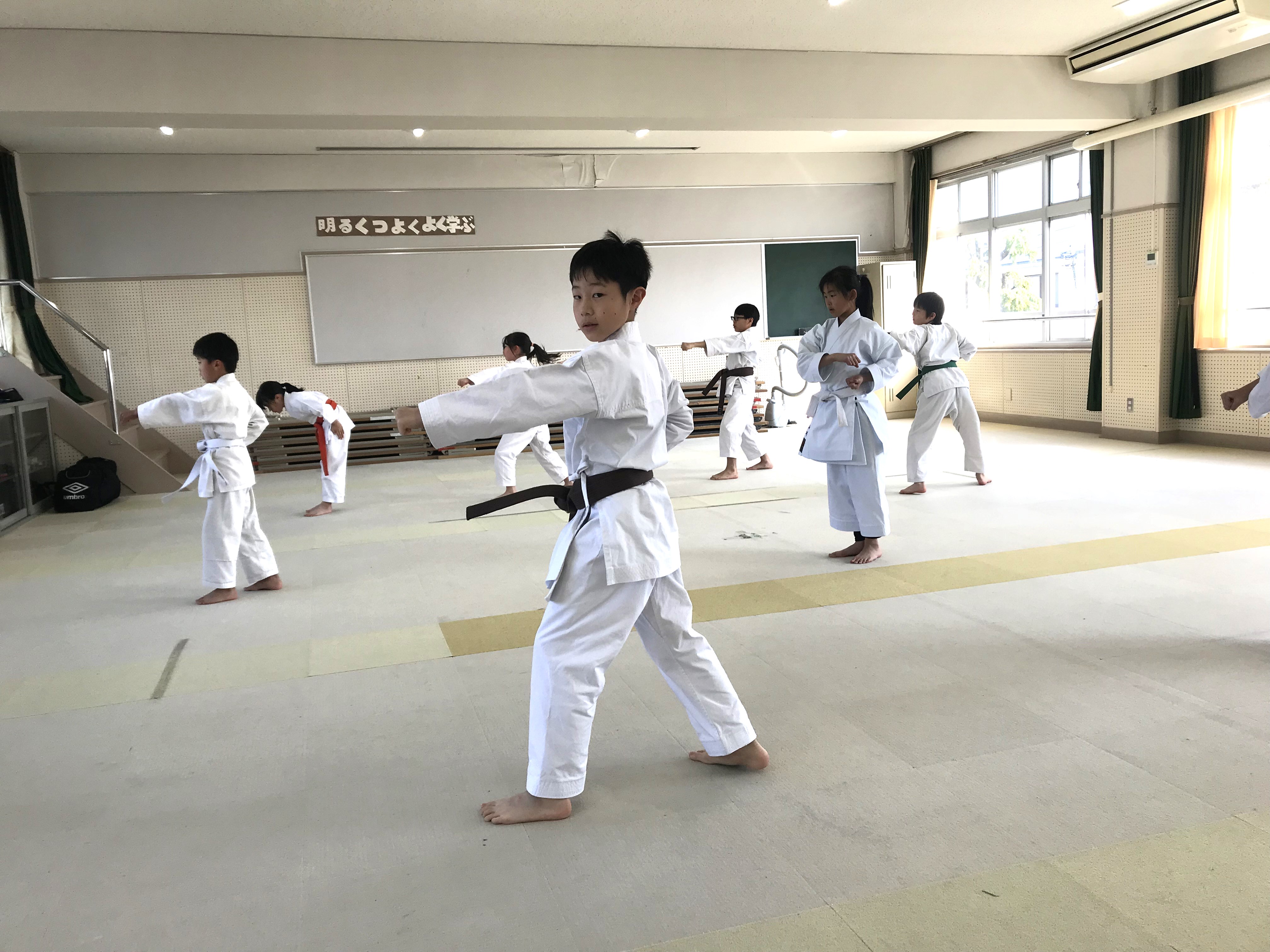刻み突き・中段逆突きを何度も繰り返し、前の子よりも速く、隣の子よりも速く、誰よりも速く突きを出す意識で練習しました。
