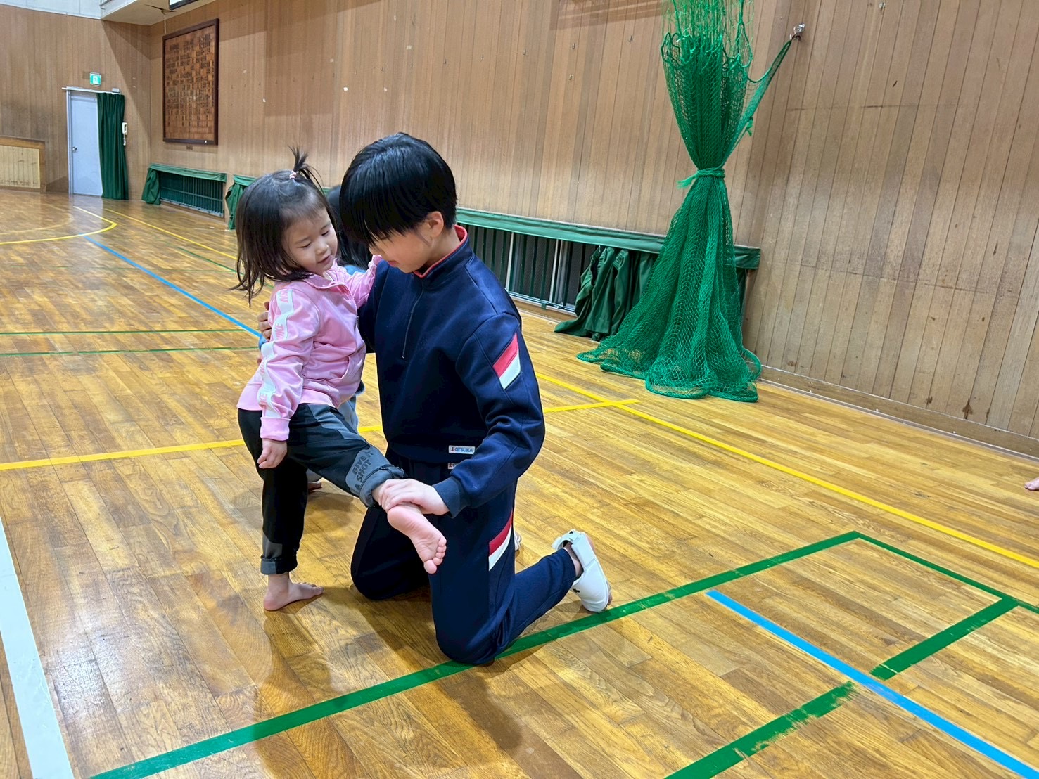 小休止挟んでる間、上級生に目をやると幼児たちの練習相手になってくれてました。