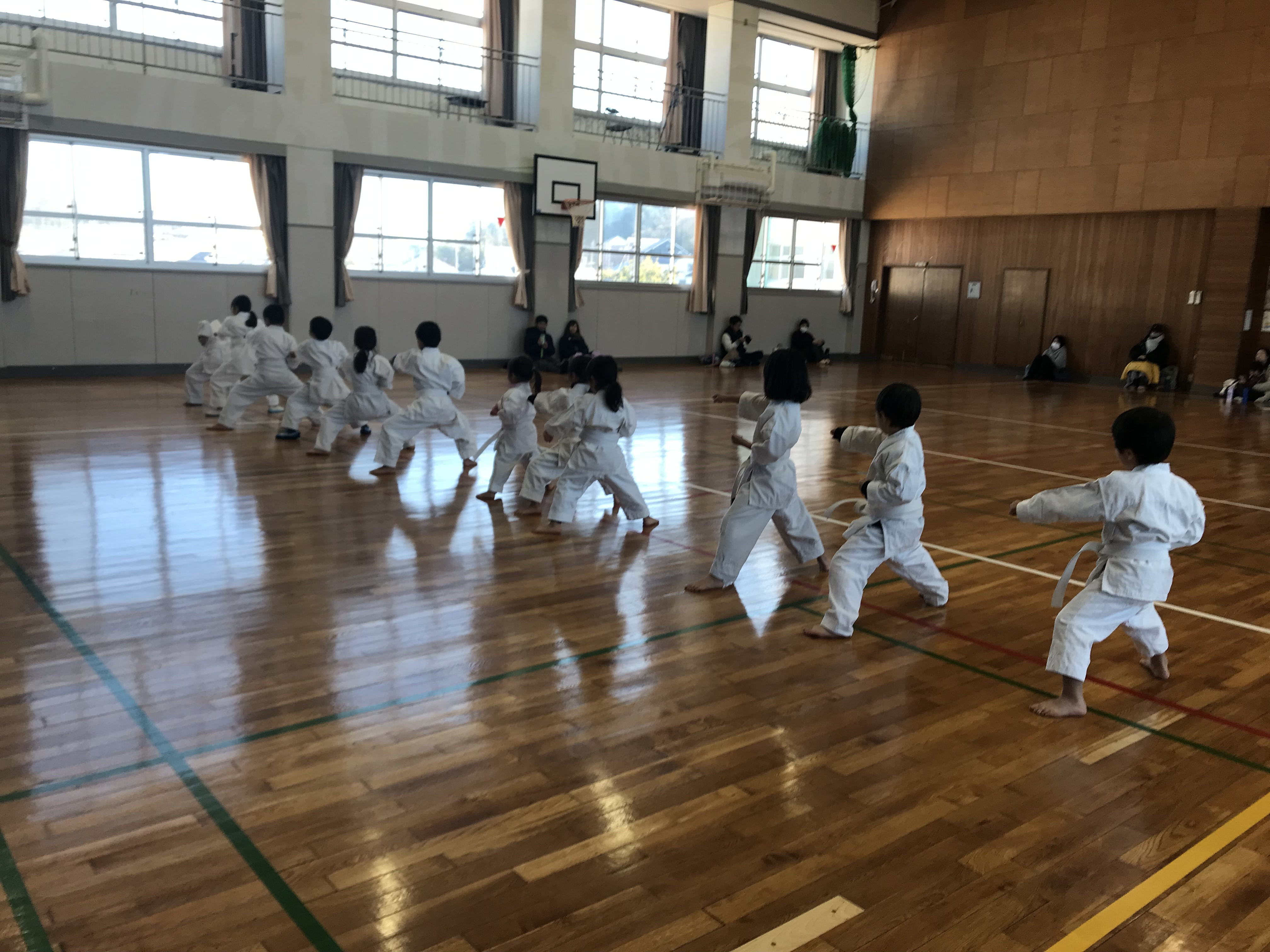 突き・引き手・中段横受け・上段揚げ受け・下段払い・左右正面蹴り・四股立ち突き