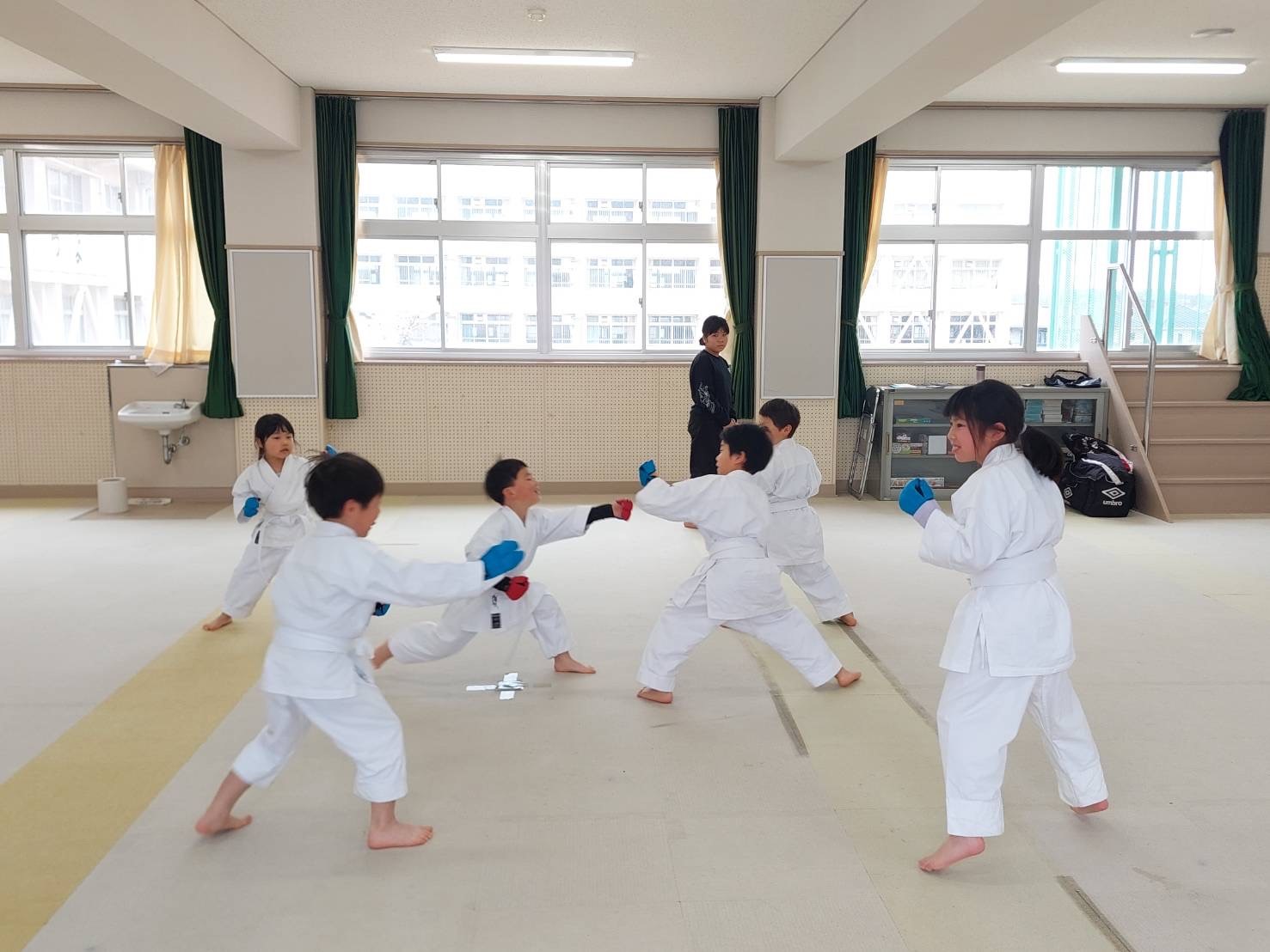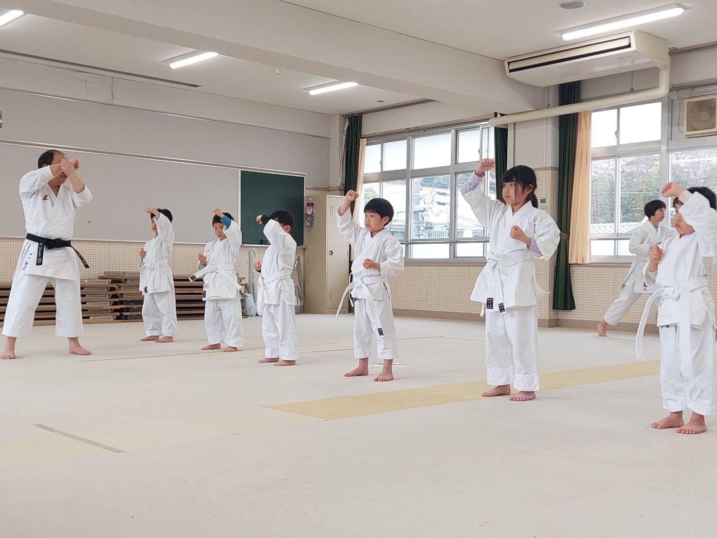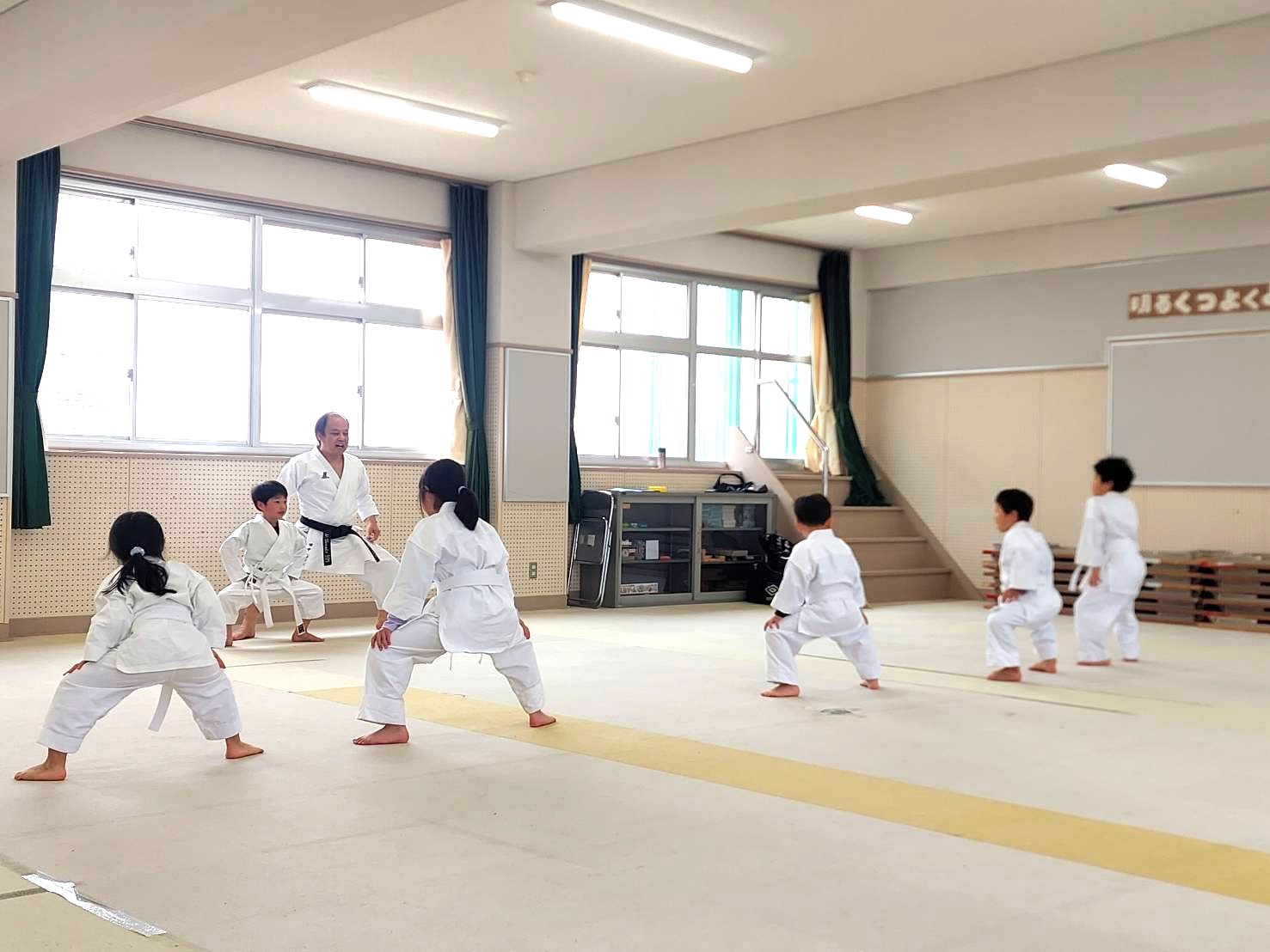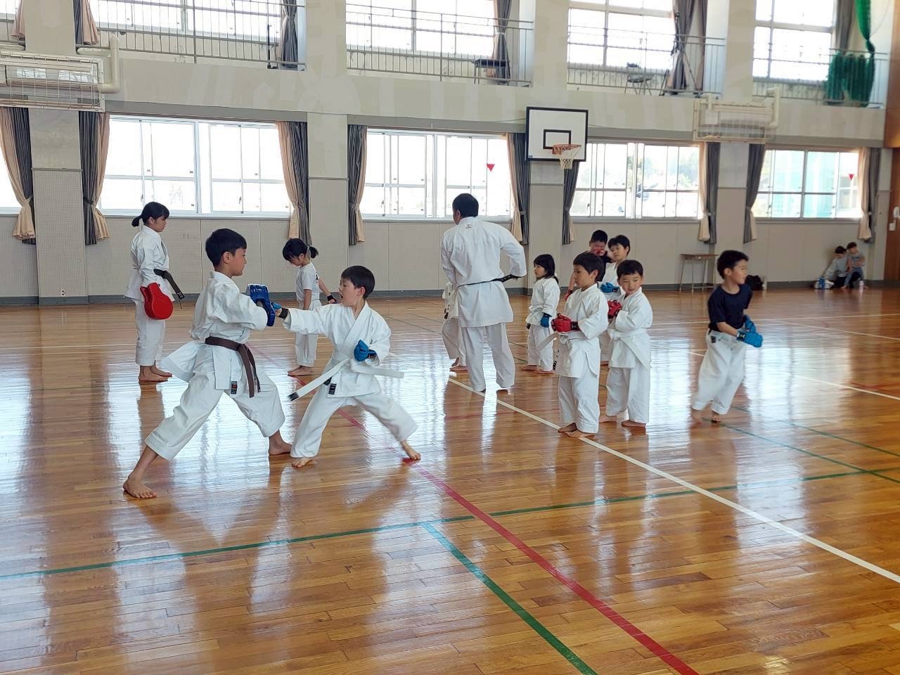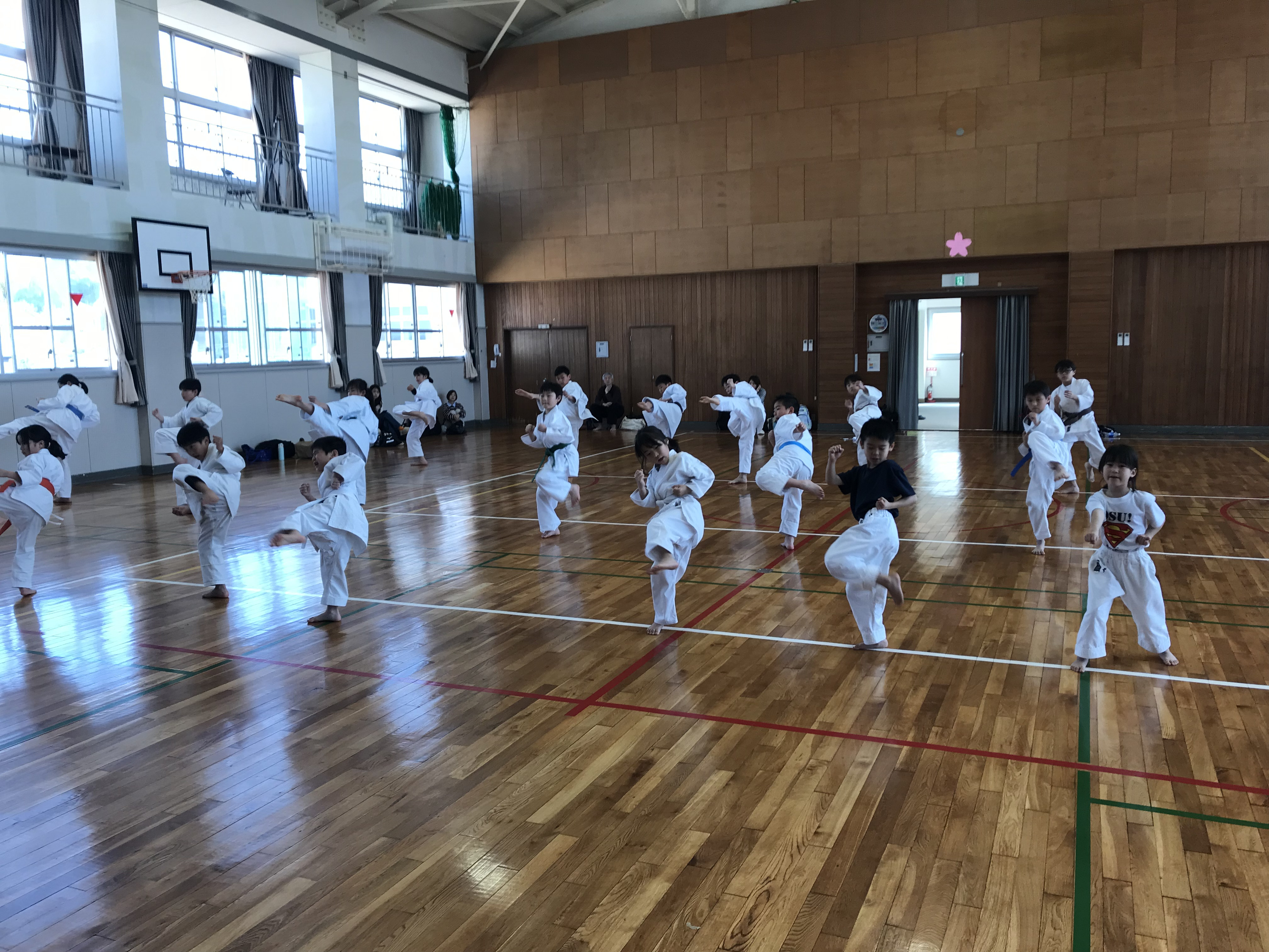 稽古の中身は、突き・中段横受け・上段揚げ受け・下段払い・正面蹴り・回し蹴り・手刀受け
