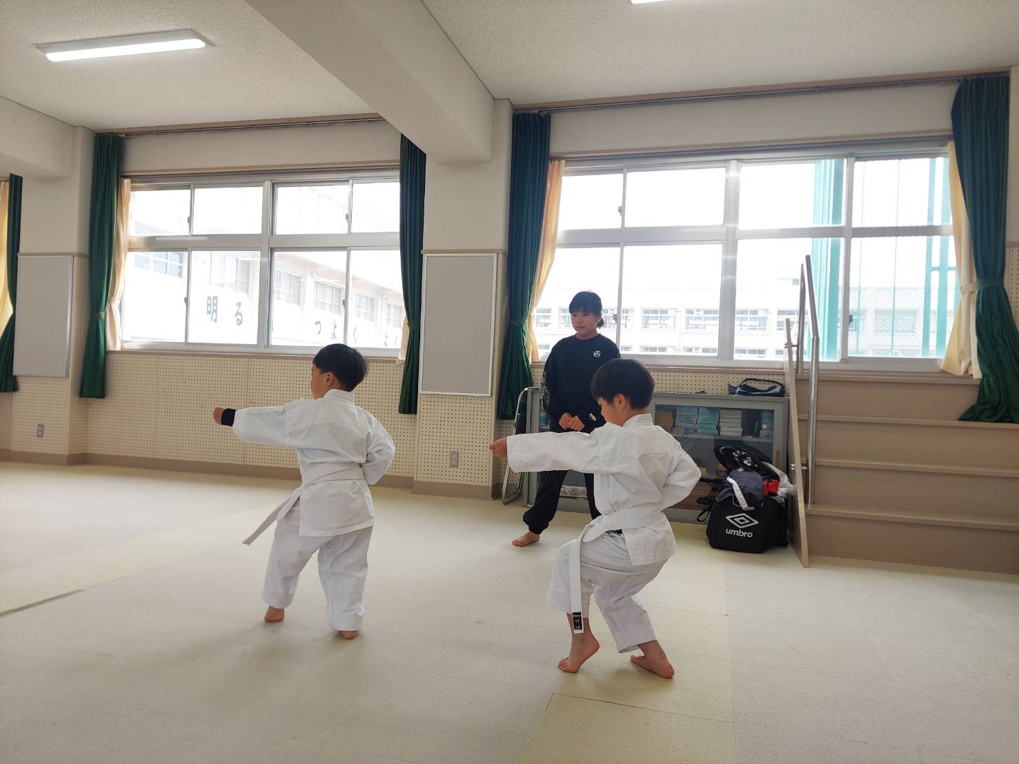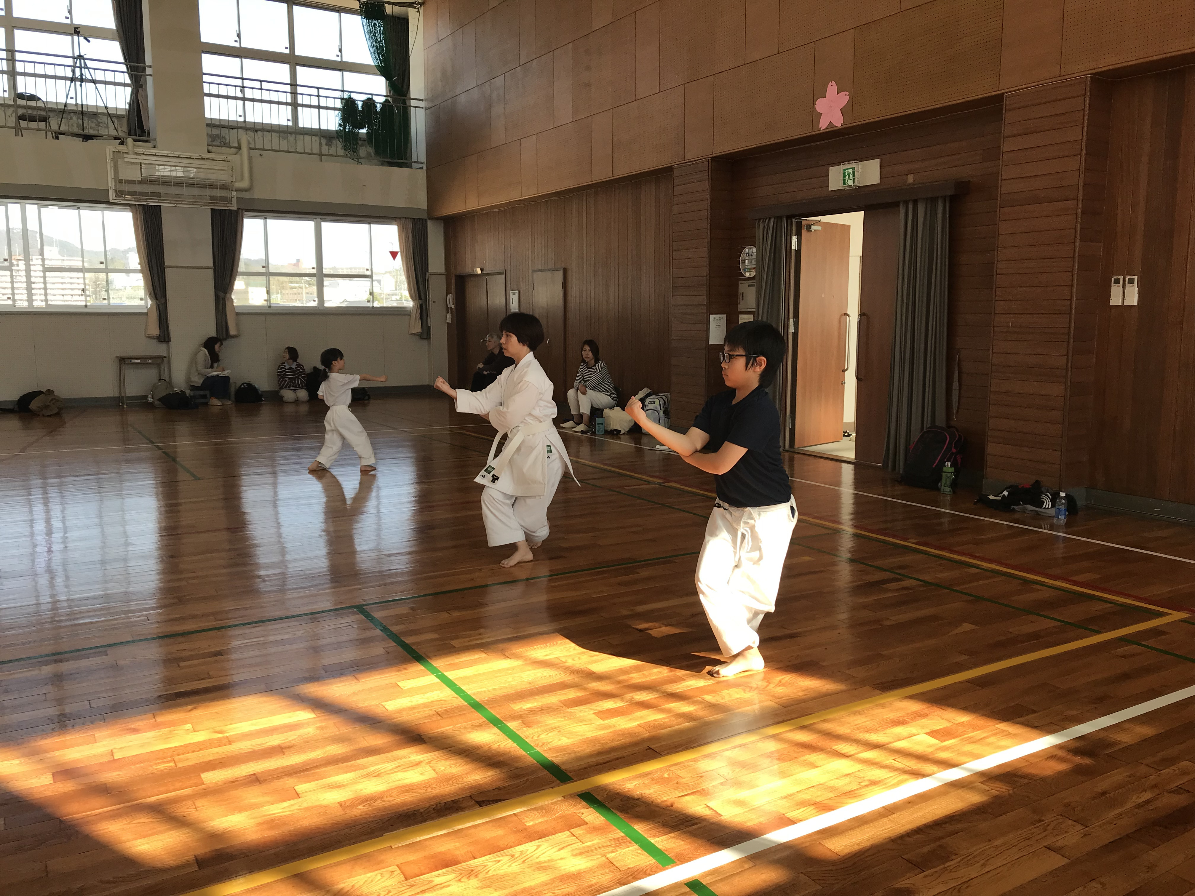この日は全員で打てる形、平安二段を通じて身体の使い方を指導しました。