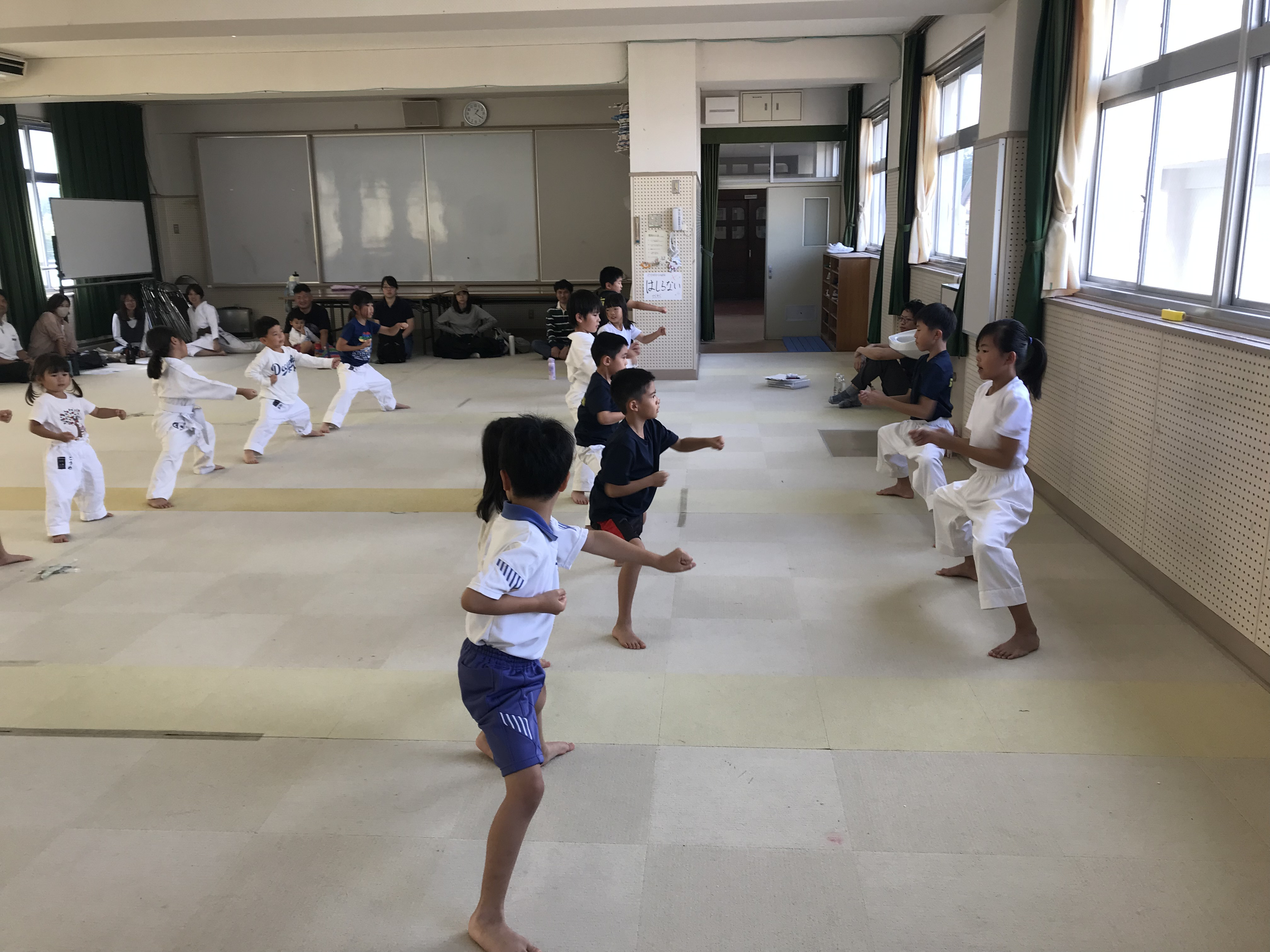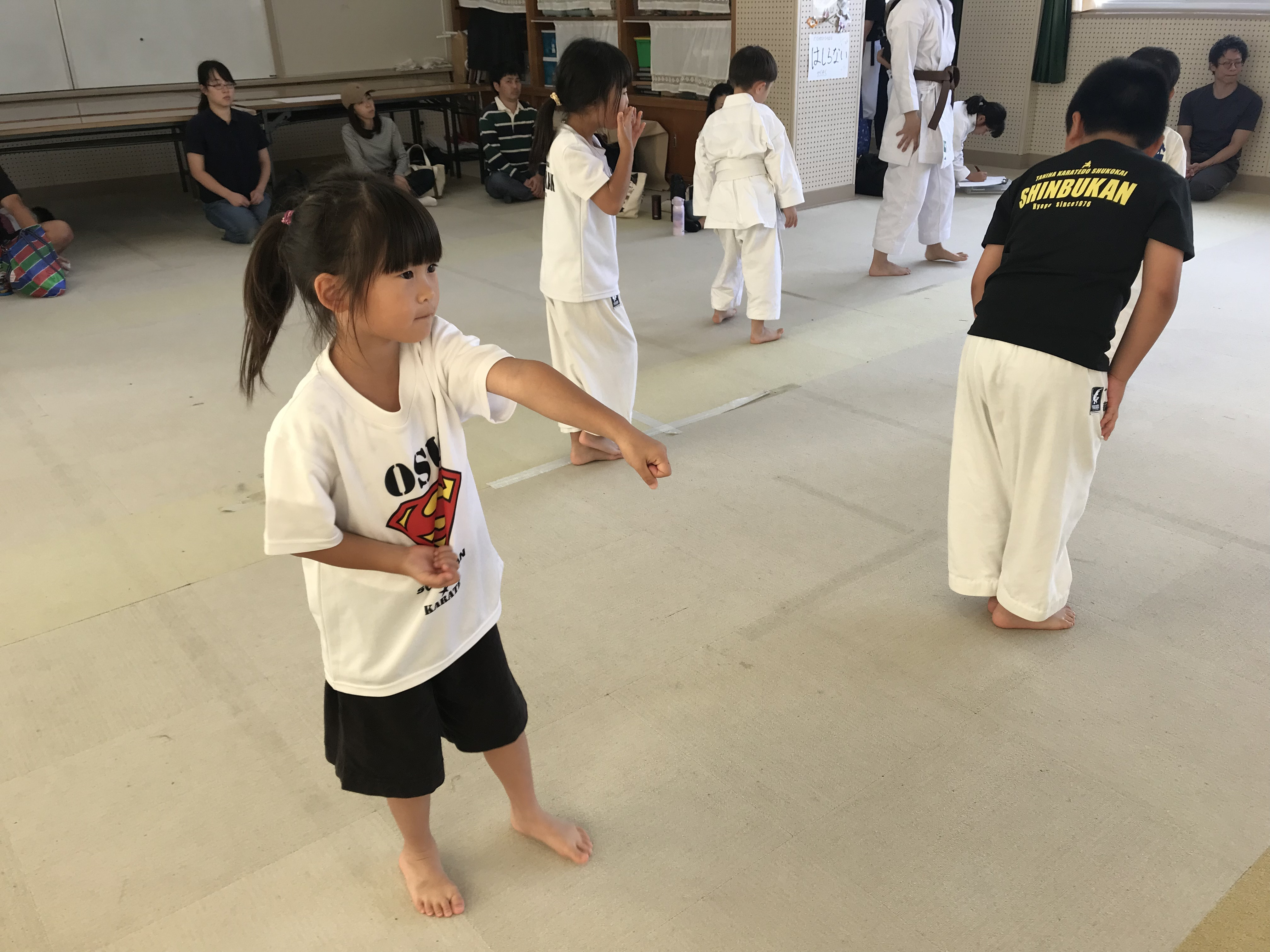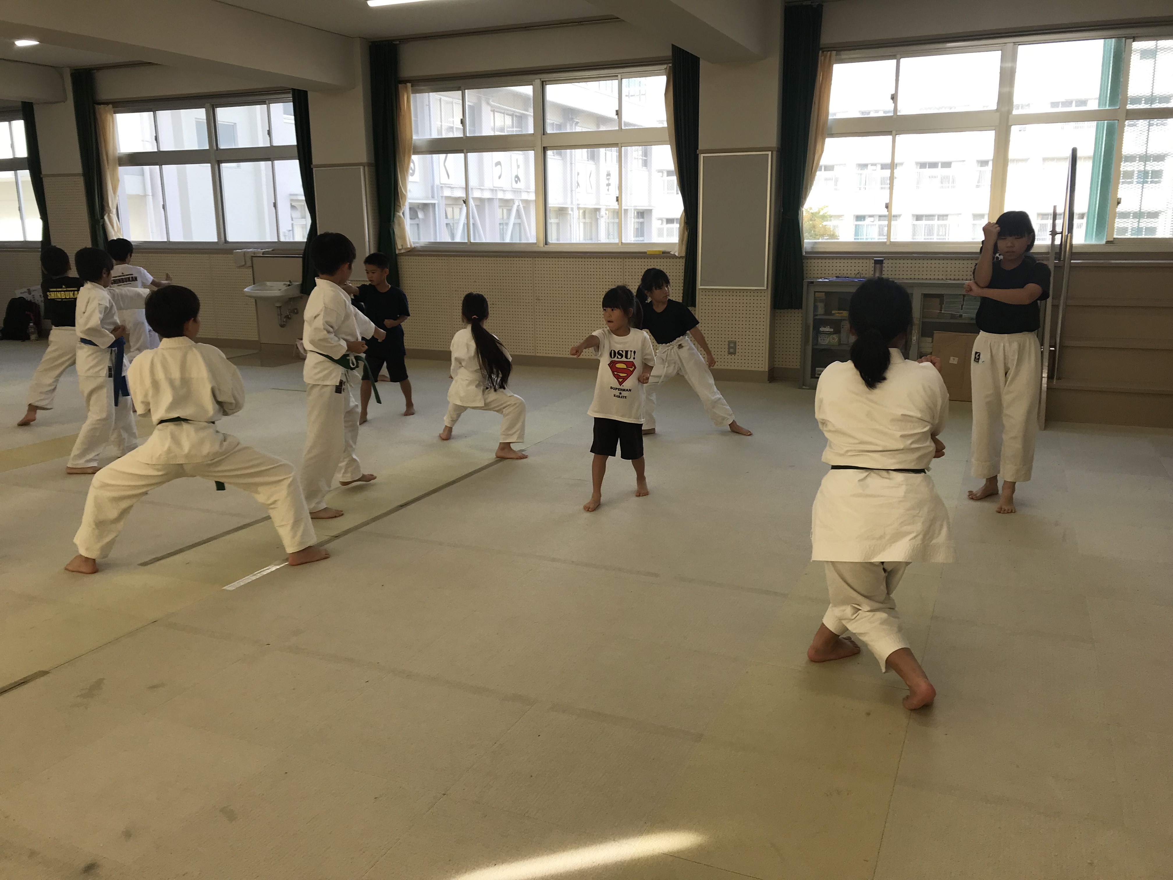 突きと中段横受け・上段揚げ受け・下段払いだけでしたが、ゆっくりのリズムでカタチを覚えていきました。