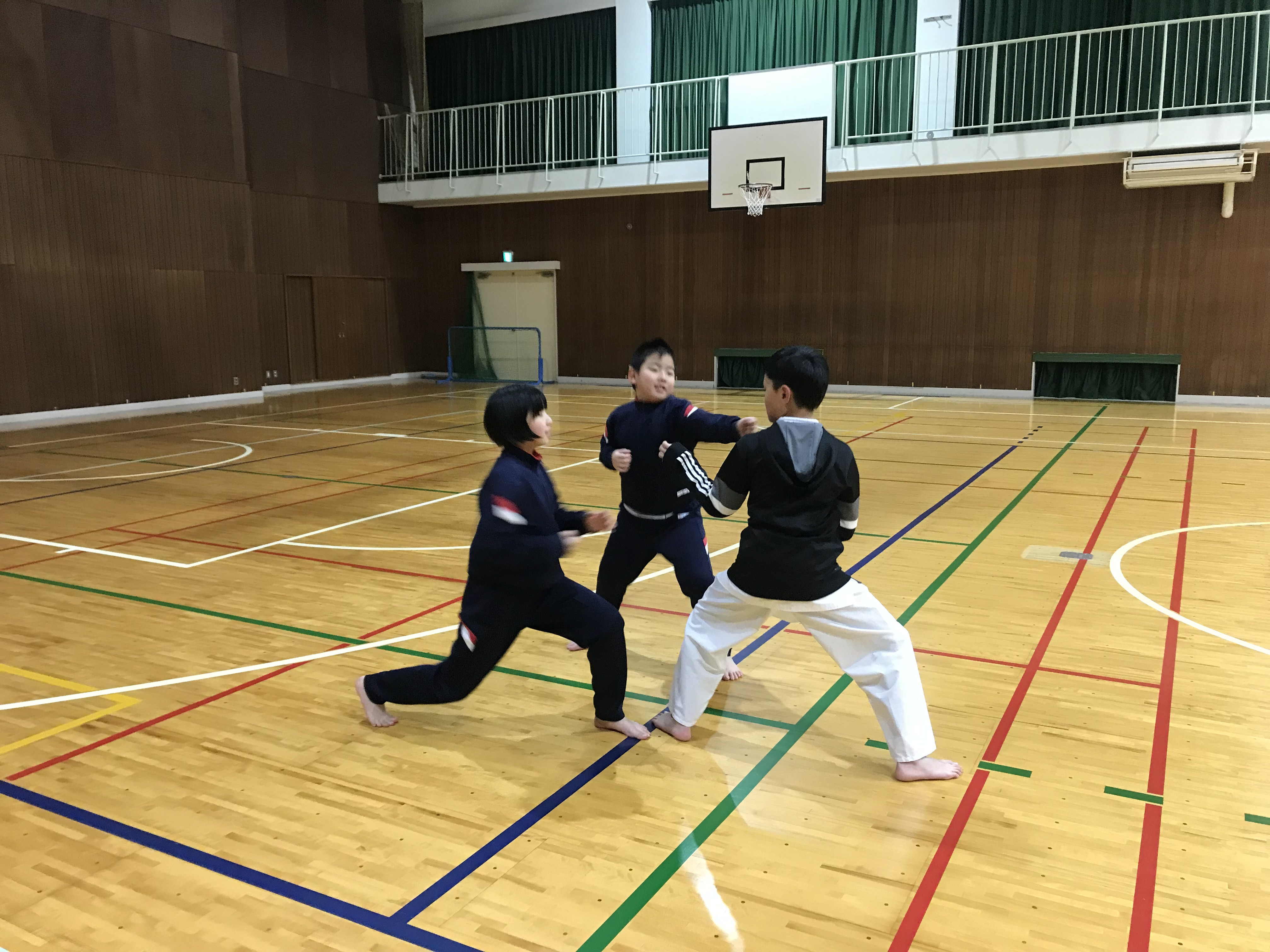 下半身強化とも言えるフットワークの練習と違い、実際に突きや蹴りの練習は楽しい時間だと思います。